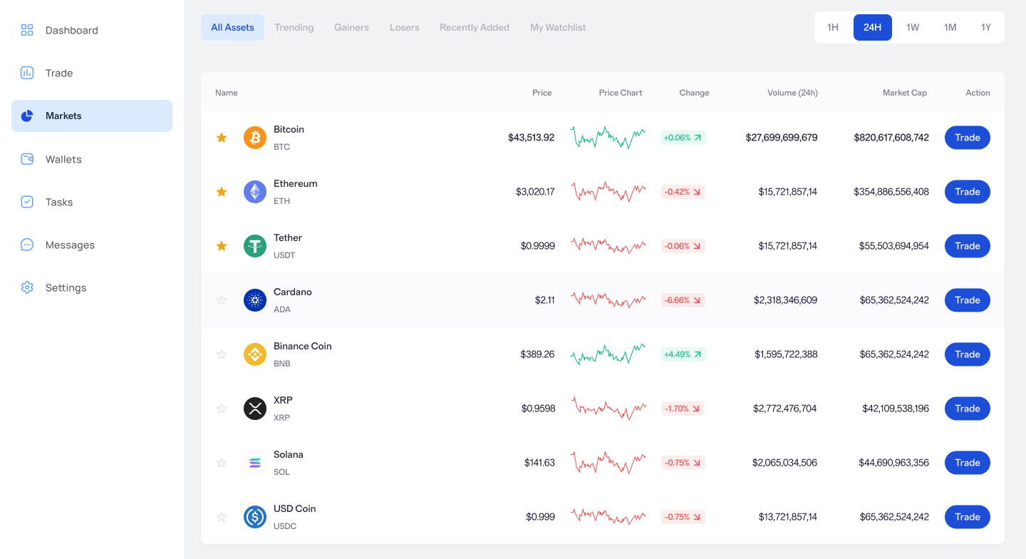 Lunara Vondilex bietet Ihnen Zugang zu den dynamischsten Finanzmärkten der Welt – alles innerhalb einer intelligenten Plattform. Ob Sie in Kryptowährungen investieren, wichtige Forex-Paare handeln oder von Bewegungen an der Börse profitieren möchten – unsere KI-gestützten Tools helfen Ihnen, smarter, schneller und mit mehr Vertrauen zu handeln.